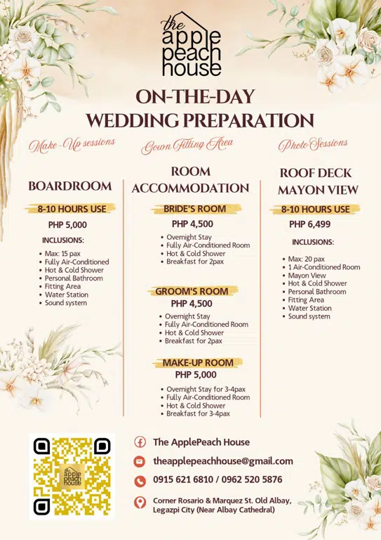 At The ApplePeach House Legazpi, our services keep your stay easy and comfortable. From reliable Wi-Fi and cozy rooms to venues for parties and wedding prep, plus a rooftop with a Mayon Volcano view, we make every plan simple.